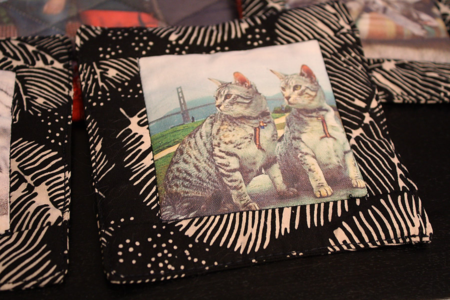 The only thing I love as much as giving DIY gifts is getting DIY gifts! Over the holiday break, I noticed a high view and download count on my stats counter for this blog. Curious, since I wasn't posting very much. Then I got an unexpected package at my doorstep after Christmas from Olga. She made coasters and potholders from the photos here. The aroma is what hit me first! She made aroma therapy coasters with lavender, vanilla, and pomegranate. It smells fantastic! (I stuck two in my car). They get stronger when you put a hot drink on them too. Needless to say, I'm very impressed, especially since she is just starting to dip her toes into crafting!
