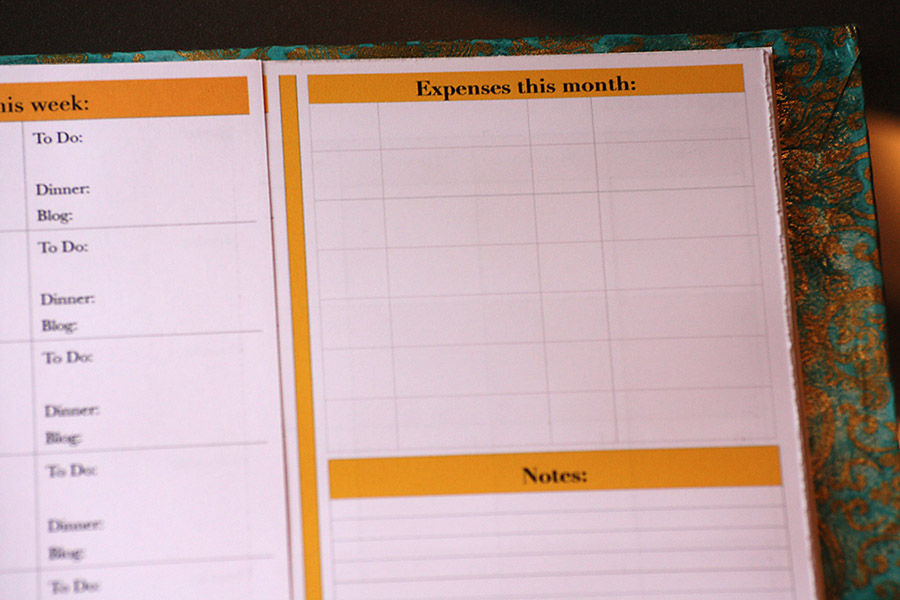 With the simultaneous view, I have everything at my fingertips without flipping all over the place. But still, this planner doesn't fully fit my needs for planning finances, projects, dinners, events, and goals. Oh well, doesn't matter because I've been scouring the interwebs and Target for the last 2 months for the same planner, but no luck. The weeks were running down, and January was just around the corner, I had no choice but to make my own. To be honest, I was kind of dreading it because of all the miscellaneous steps and waiting for Kinkos. I like projects that I can start an finish without leaving the house. I'm the kind of person that will start and finish a twin sized quilt in 3 days, only stopping because it gets to late to be using my noisy sewing machine.