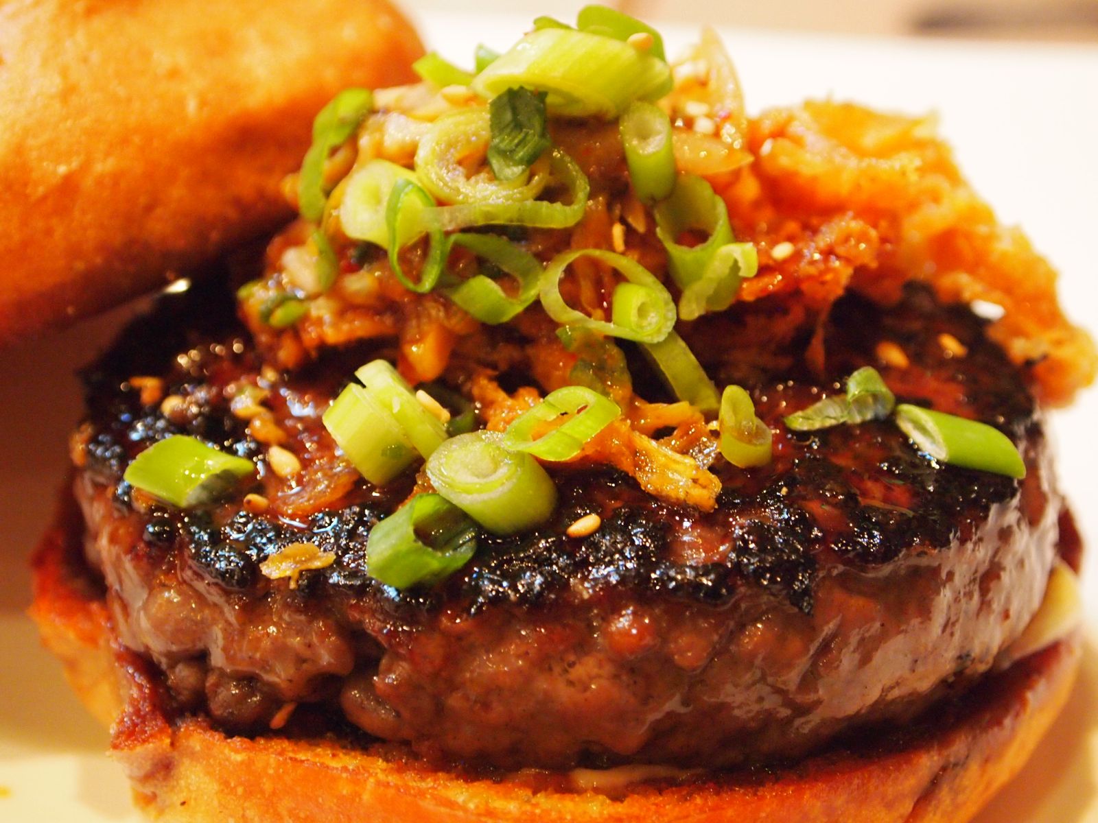 The special at Umami that weekend was the Korean BBQ burger. Korean BBQ marinated beef, topped with caramelized onions, chopped kimchee, and green onions.